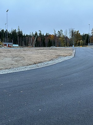 Arbetet fortlöper med vår Multibana och arbetet som görs nu är att finjustera kanterna och att göra klart arbetet runt rörbron samt att asfaltera det sista innan slutbesiktning. Vi räknar med att vara klara under november månad