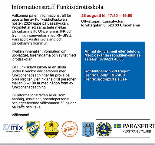 Som vi tidigare har berättat ska vi till hösten starta en Funkis Idrottsskola tillsammans med UIFK, Gymmix, RF SISU, Parasportförbundet och Ulricehamns Kommun uppe på Lassalyckan.