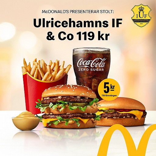 Har du inte testat vår meny än? Ta med dina vänner eller kanske familjen och ät vår meny på McDonalds i Ulricehamn. Samtidigt som du äter dig mätt så stödjer du våra ungdomsverksamheter🖤💛