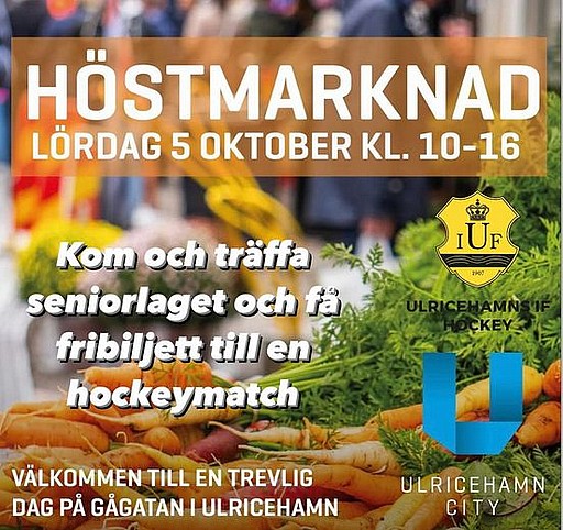 Nu på lördag är det höstmarknad och vi i från UIF Hockey är på plats tillsammans med övriga sektionerna mellan 10.00-14.00 vid Grodparken. Kom förbi och säg hej