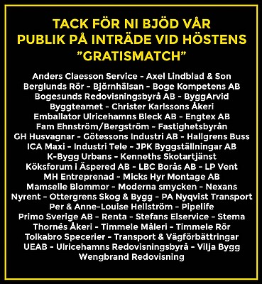 Ni är värdefulla för oss, tack till alla våra sponosorer!