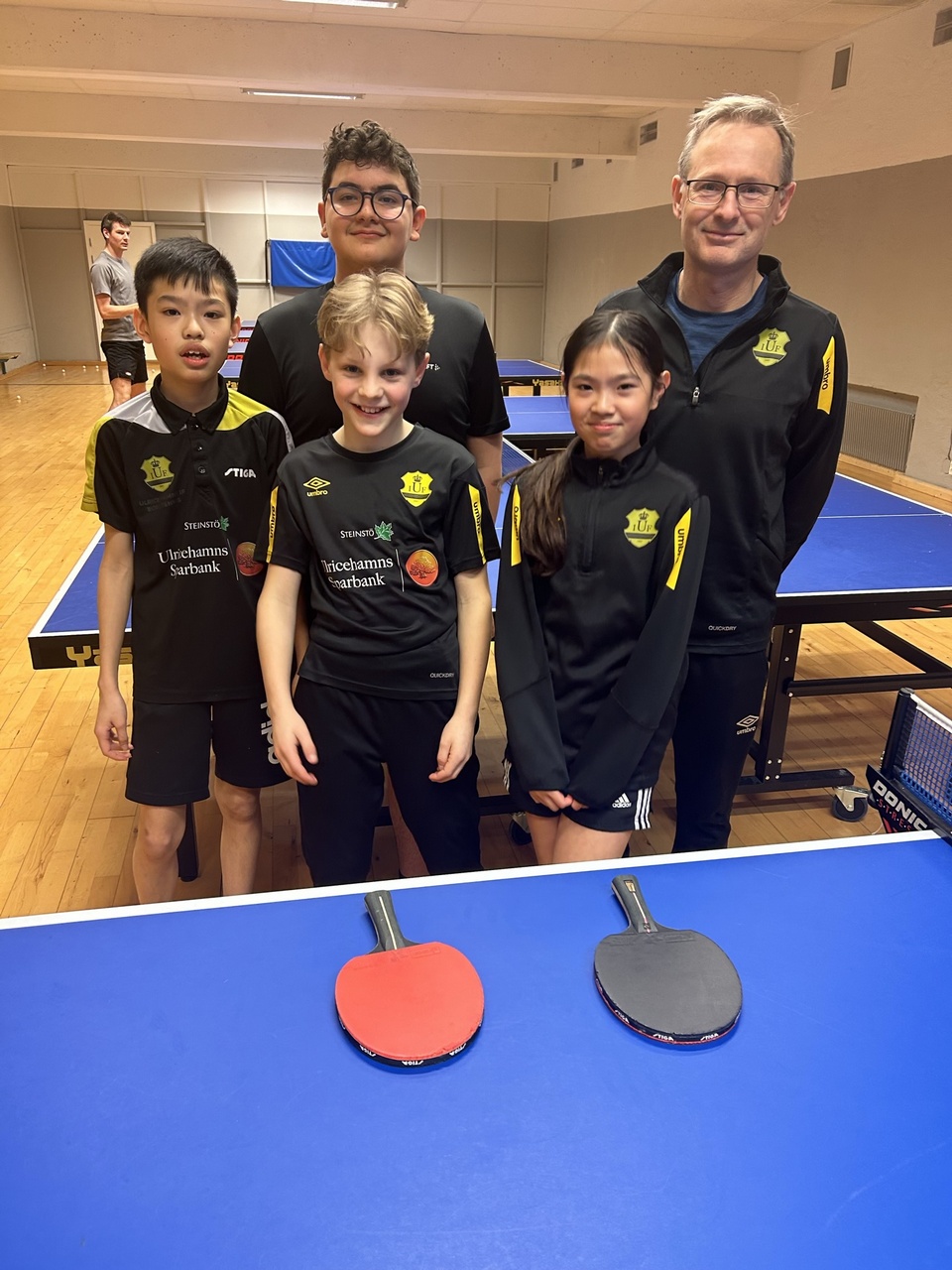 Serieseger i näst högsta ungdomsserien. Lagledare Fredrik Svensson med sina spelare från vänster Danny Ho, Joel Svensson, Charbel Najjar och Lucy Phan.