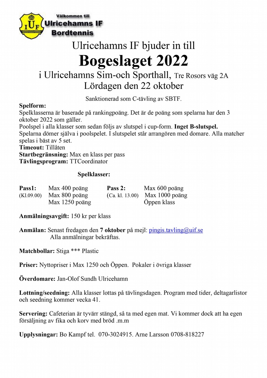 Inbjudan Sektionsstämma Ulricehamns IF-Bordtennis
