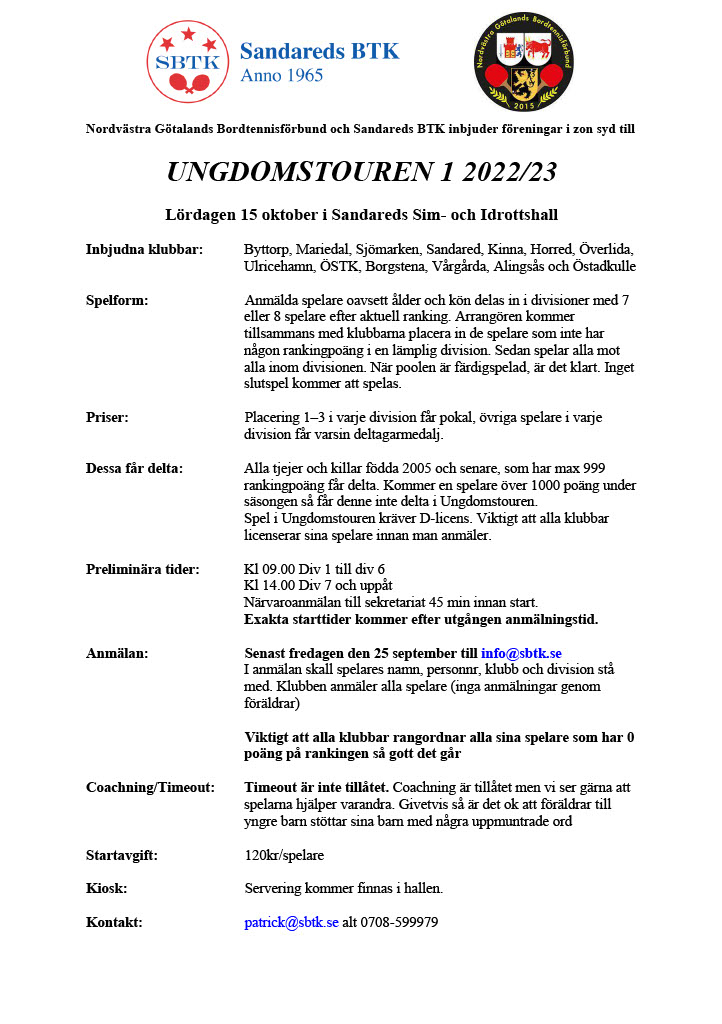 Tänk på alla anmälningar sker till pingis.tavling@uif.se