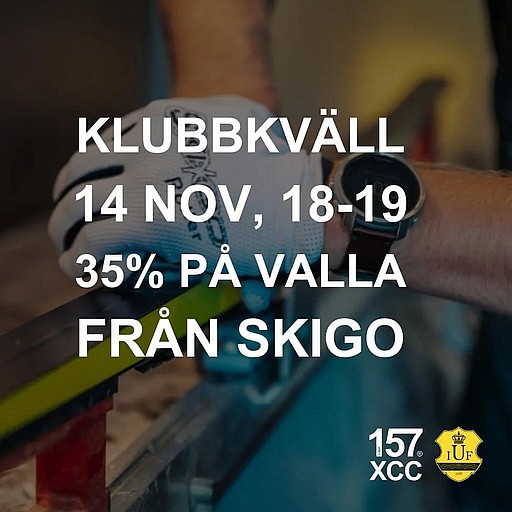 Denna kväll erbjuder L157XCC Ski-Go valla och tillbehör med 35% rabatt och 20% rabatt på övrigt valla sortiment.