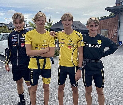 På bilden i mitten tillsammans med Malte ses UIF-arna Eddie Gustafsson som knep en 6:e plats i H 15-16 och Melker Henden som blev 6:a och Edvin Högman som blev 14:e i klassen H 17-20.